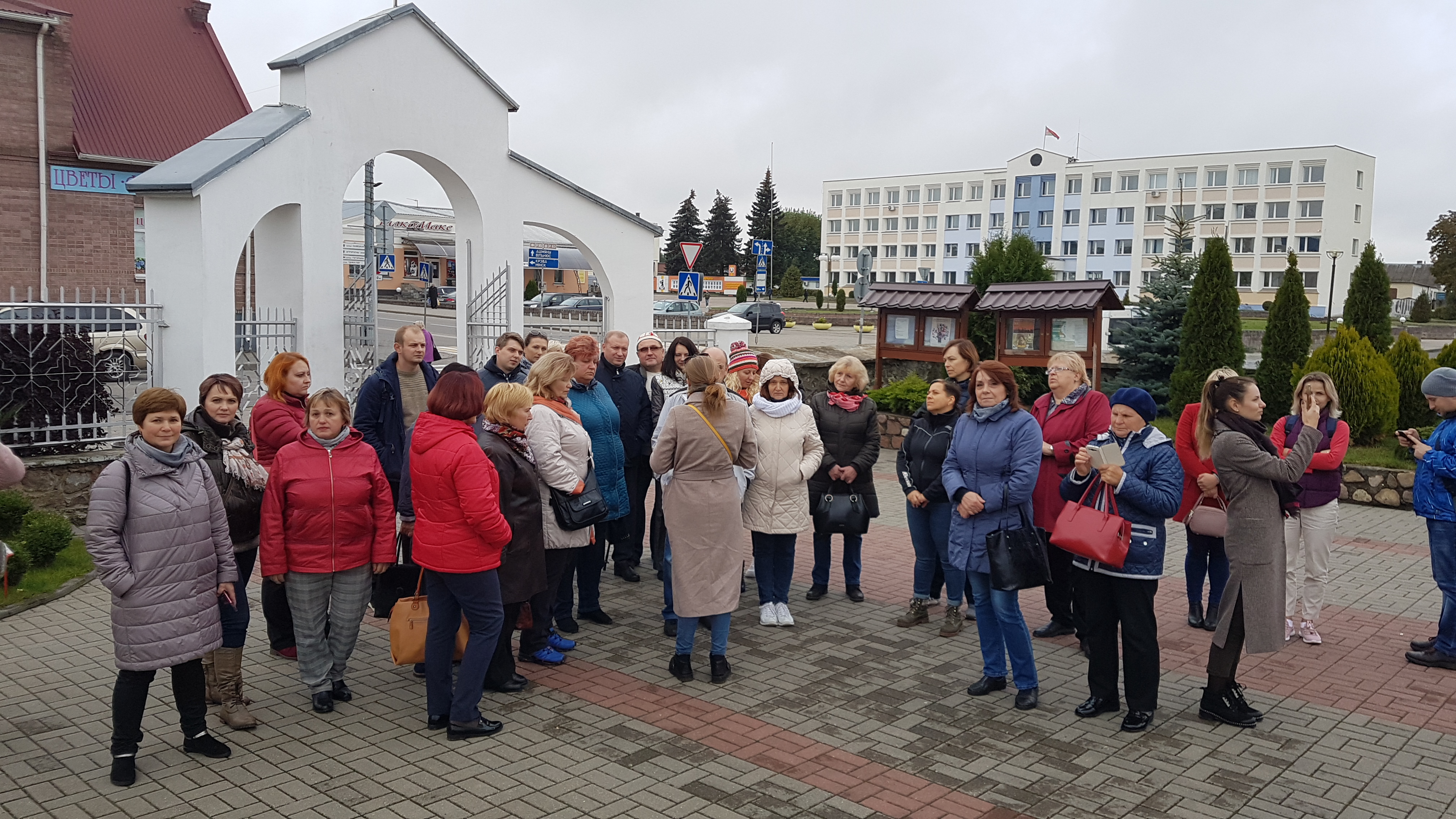Еще немного пути, и экскурсия продолжилась в Островце. Городок поразил своими молодыми кварталами, современной аккуратной застройкой – это жилье для специалистов, которые работают на строительстве новой атомной электростанции. Также Островец может гордиться присутствием исторических памятников. Наша группа посетила костёл святых Космы и Дамиана, построенный в 1785-87 гг.