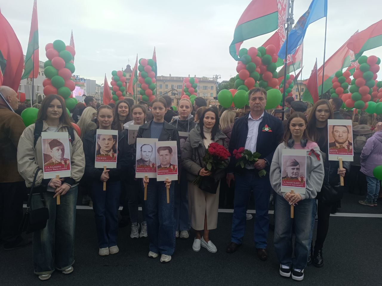 Подробнее...Делегация Фрунзенского района, депутаты, общественный актив, трудовой и учащийся коллектив филала ИПК УО РИПО под руководством главы администрации Сергеем Анатольевич Шкрудневым приняли участие в торжественном митинге с участием Главы государства в рамках празднования 79-й годовщины Великой Победы.