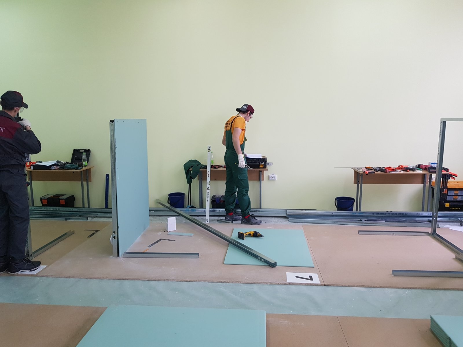 Учащийся филиала «Индустриально-педагогический колледж» Северин Илья участвует в региональном этапе конкурса «WorldSkills Belarus 2020» по компетенции «Сухое строительство и декоративные работы».