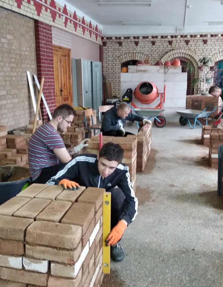 Практический этап квалификационного экзамена на получение квалификации рабочего «Каменщик 4-го разряда» проводился в учебной группе 113-17 в мастерской по каменным работам.