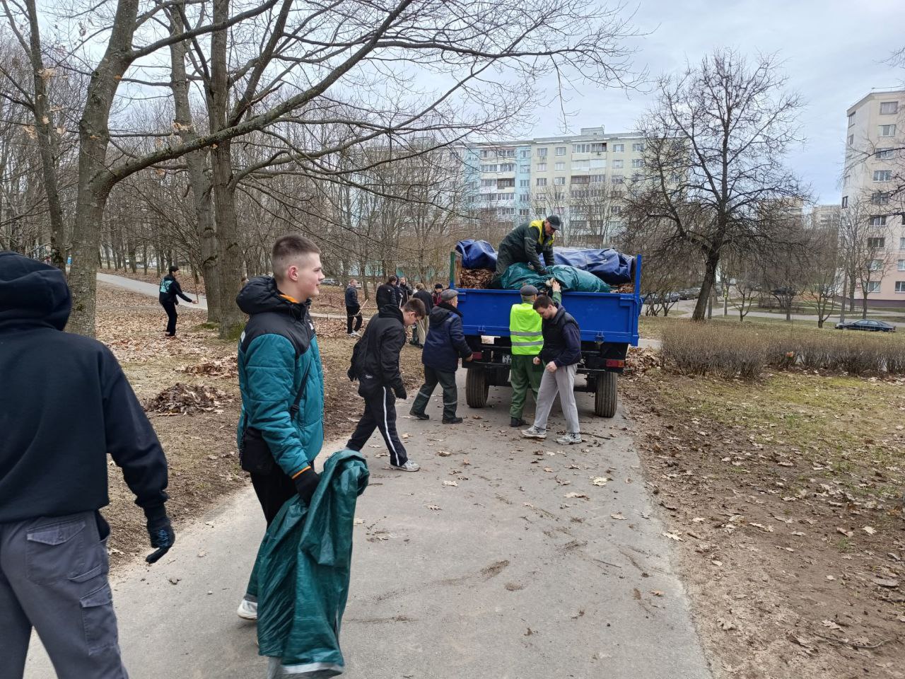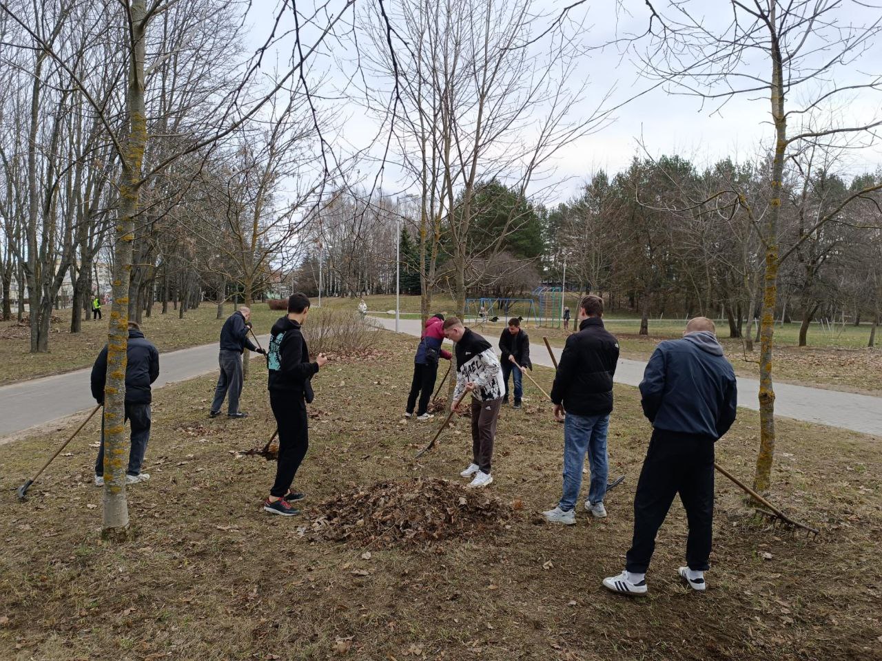 В рамках месячника по наведению порядка, благоустройству и озеленению 30 марта 2024 года учащиеся филиала ИПК УО РИПО во главе с куратором учебной группы 162-223 Вихновским Александром Яковлевичем устроили настоящий трудовой десант по уборке территории