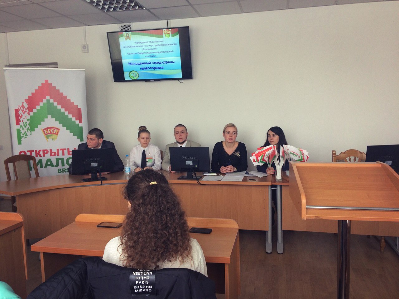 21 февраля 2018 года в администрации Фрунзенского района г.Минска состоялась встреча учащейся молодёжи с бойцами МООП филиала ИПК УО РИПО. В ходе встречи члены МООП познакомили ребят со спецификой деятельности отряда, целями и задачами, формами, методами работы и основными направлениями деятельности отряда. Поделились своим опытом и дальнейшими планами.