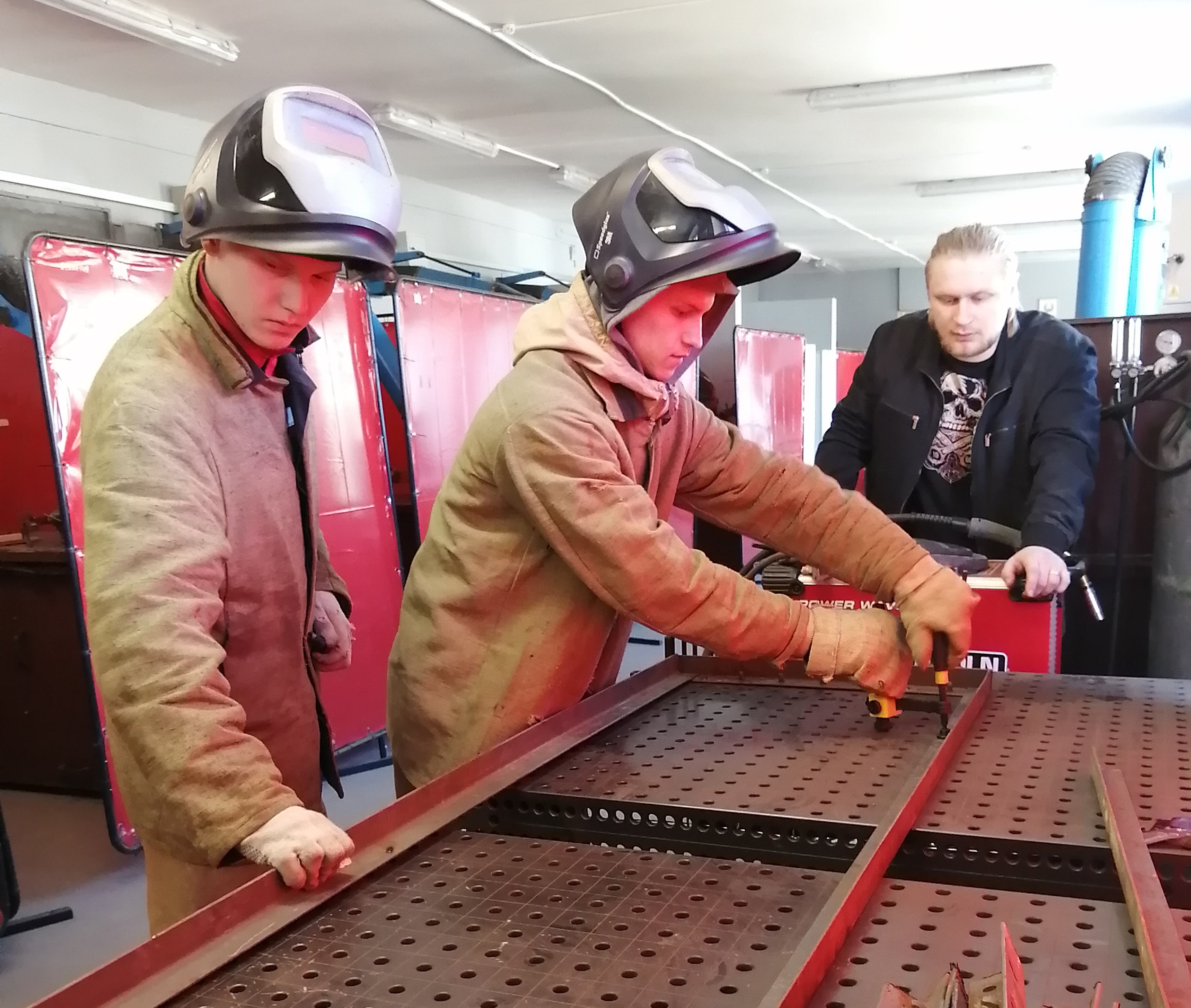 В процессе прохождения практики, учащиеся приобретают навыки сборки и сварки металлоконструкций.