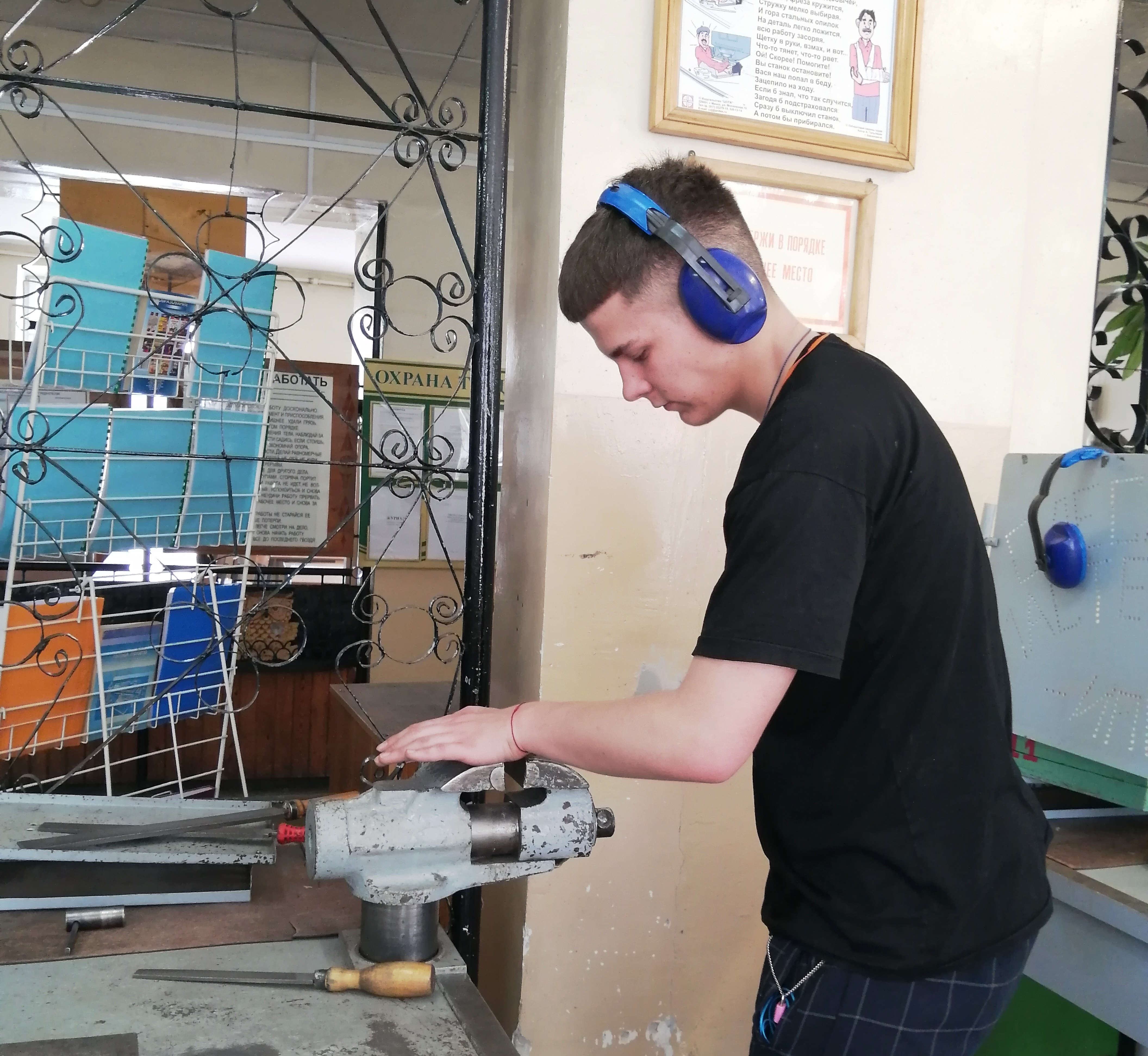 Учащиеся группы 161-19 проходят учебную практику в слесарной мастерской колледжа. Под руководством мастеров производственного обучения осваивают навыки ручной и механической обработки металлов.