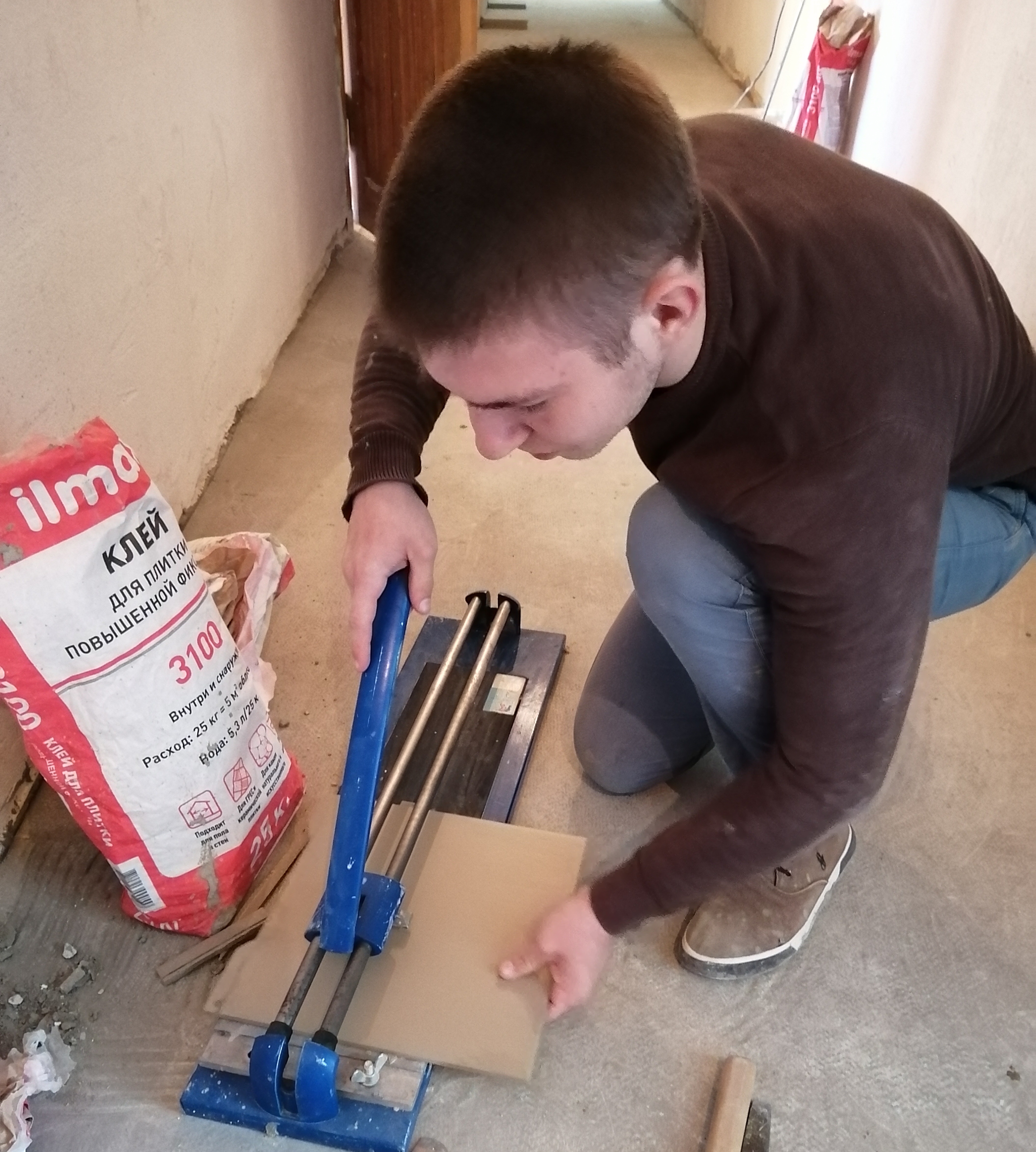 Учащийся группы 111-18 Лапунов Алексей проходит учебную практику на повышение квалификационного разряда по профессии на базе филиала в учебной штукатурной мастерской.