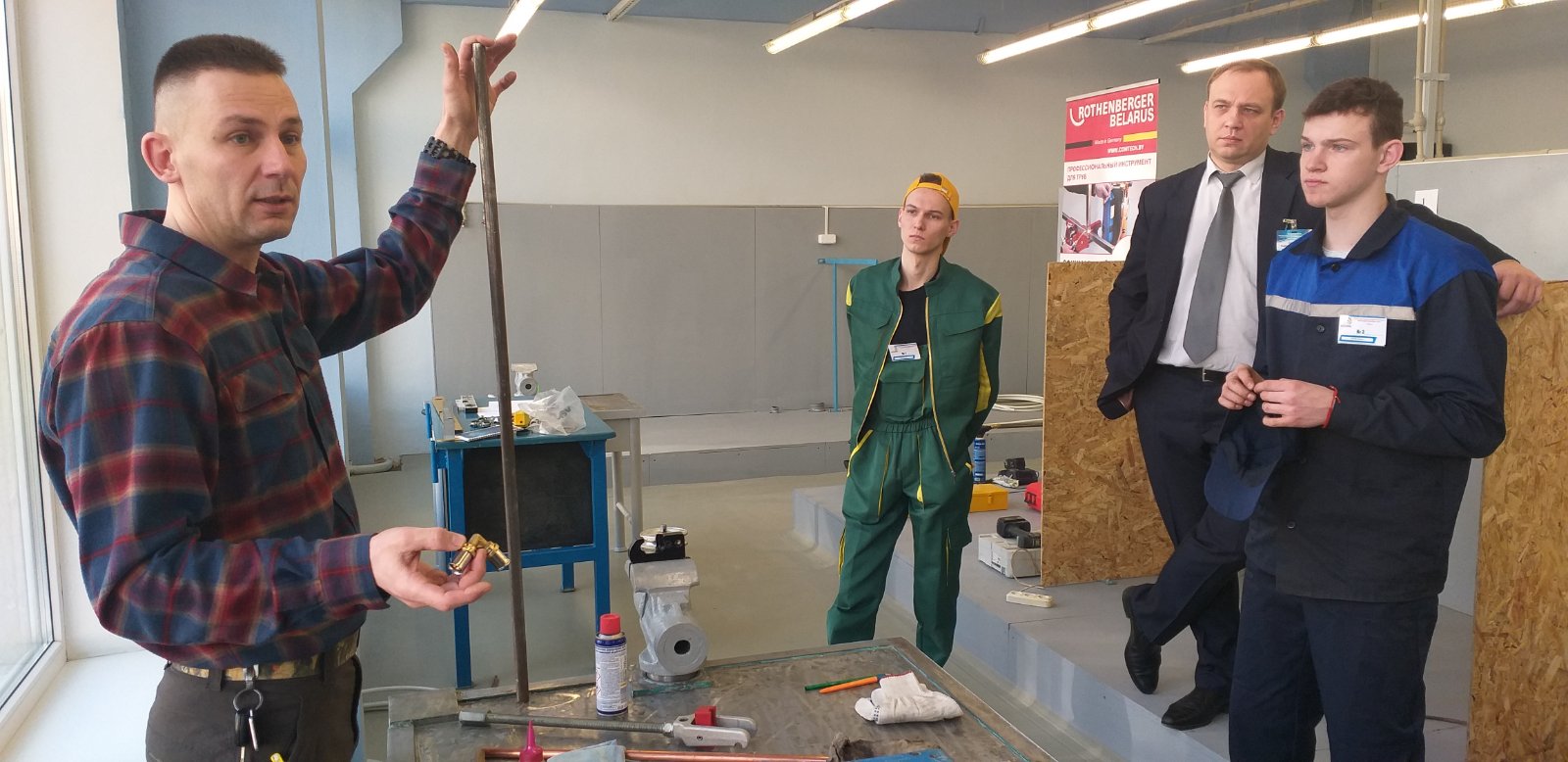 Учащийся филиала «Индустриально-педагогический колледж» Кузьмичев Мирон участвует в городском конкурсе профессионального мастерства среди учащихся учреждений ПТО и ССО «WorldSkills 2020» по компетенции «Сантехника и отопление». Конкурс проходит на базе УО «Минский государственный профессионально-технический колледж строительства и коммунального хозяйства». В конкурсе участвует 3 конкурсанта из 2 учреждений образования г. Минска. По задания конкурсантам необходимо выполнить: нарезание трубы, соединение стальных труб на резьбе, соединение медных труб пайкой и прессом, сварку пропиленовых труб, пресс-соединение металлопластиковых труб, гибку труб. На выполнение задания отводится один конкурсный день. Правильность выполнения задания и качество работ оценивают аккредитованные эксперты.