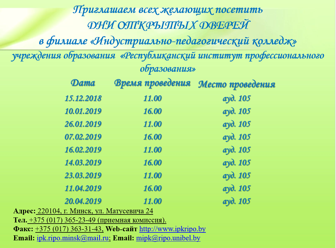 Подробнее...В рамках Года малой родины 22.11.2018г. в филиале «Индустриально-педагогический колледж» УО РИПО проведен конкурс творческих проектов «Я гэты край раздiмаю заву», в котором приняли участие учащиеся специальности 2-89 01 01 «Туризм и гостеприимство».