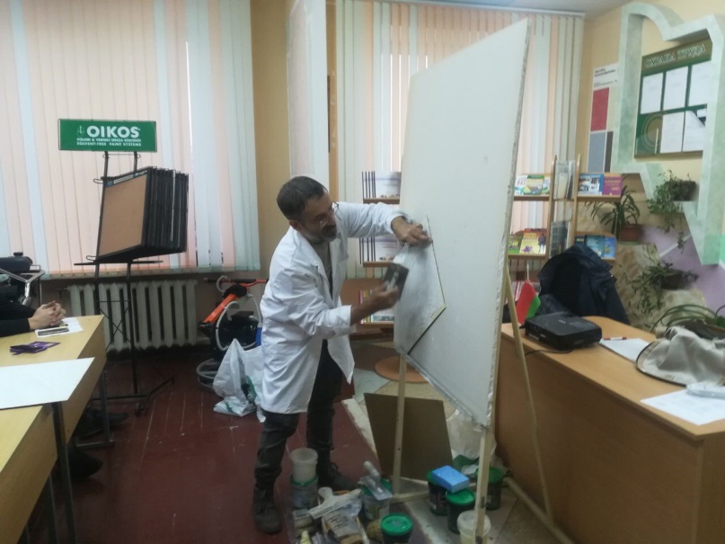 23 ноября 2018 года на базе Ресурсного центра современных технологий в строительстве компания OIKOS провела практико-ориентированный семинар «Декоративные краски и штукатурки фирмы OIKOS. Технология нанесения материалов» для учащихся колледжа, обучающихся по специальности «Промышленное и гражданское строительство» (гр. 113-18, 112-18). В работе семинара также приняли участие слушатели курсов дополнительного образования взрослых.