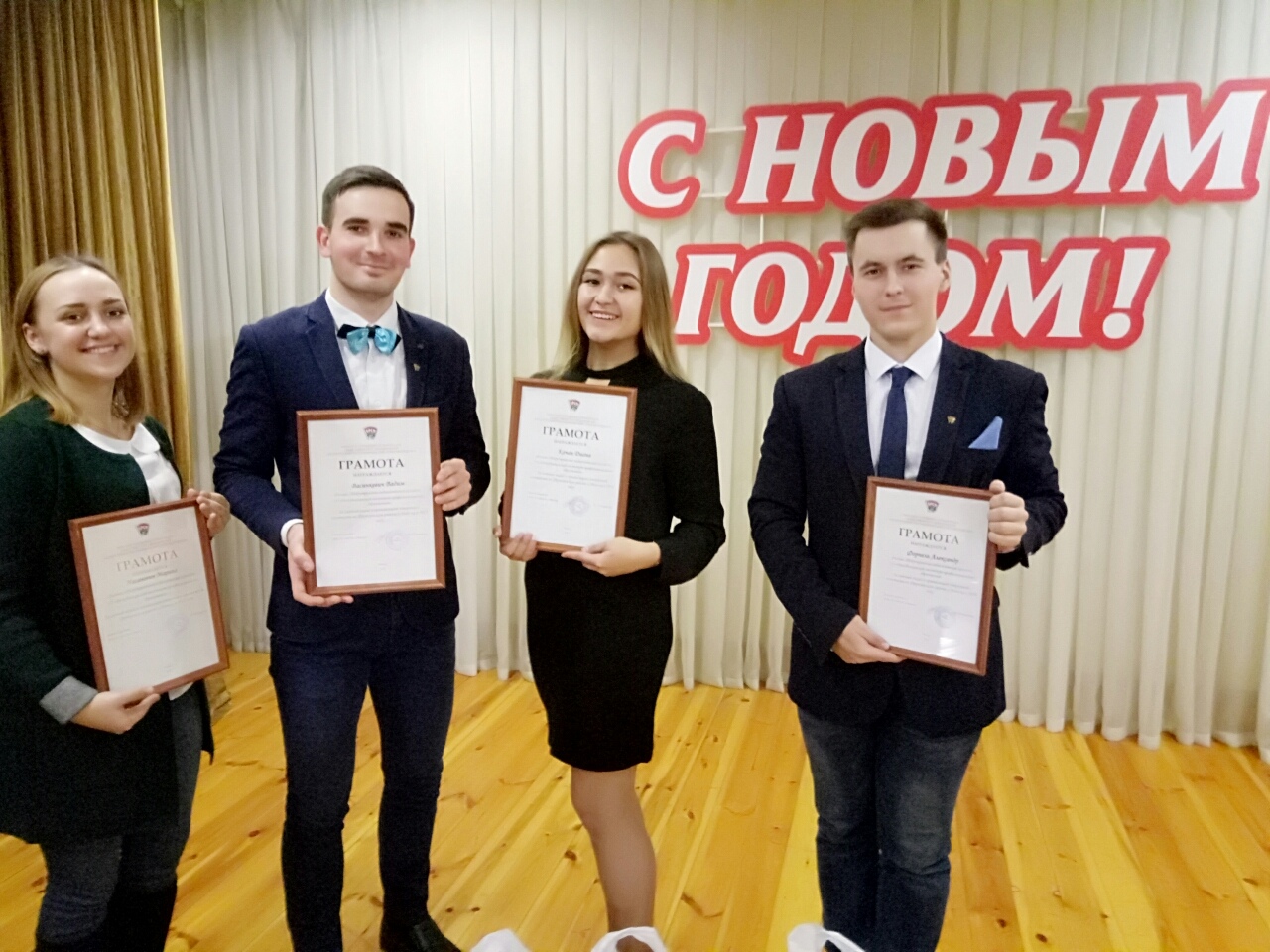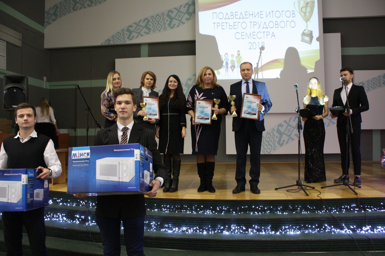 ГРАМОТАМИ и ценными подарками за личный вклад в организацию вторичной занятости во Фрунзенском районе г. Минска в 2018 году награждены командиры студенческих отрядов колледжа Александр Форнель, Диана Качан, Марина Насанович, Вадим Васинкевич.