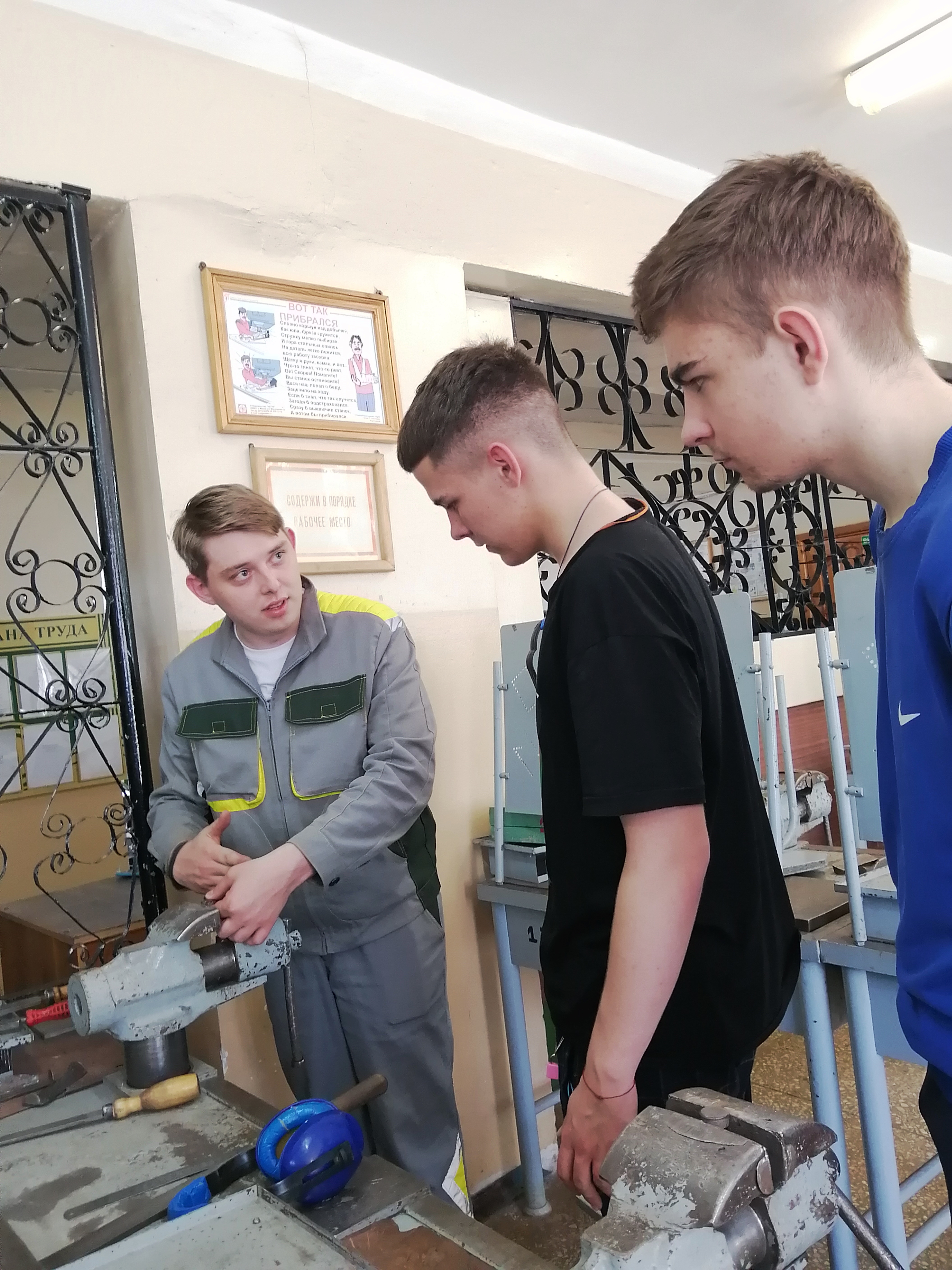 Учащиеся группы 161-19 проходят учебную практику в слесарной мастерской колледжа. Под руководством мастеров производственного обучения осваивают навыки ручной и механической обработки металлов. Данные навыки им необходимы как будущим специалистам сварочного дела.