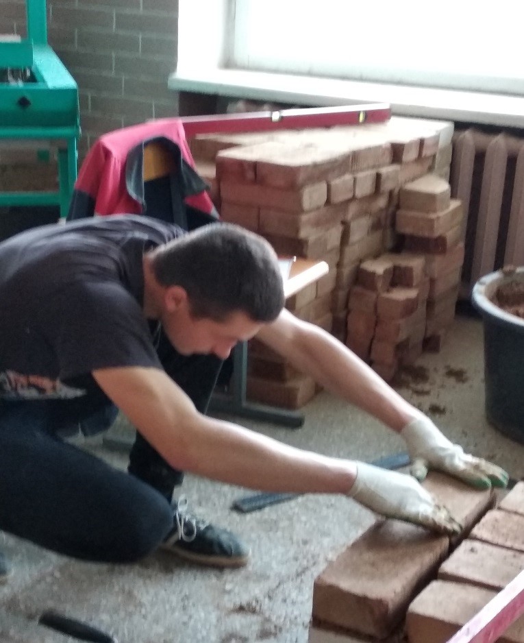 Практический этап квалификационного экзамена на получение квалификации рабочего «Каменщик 4-го разряда» проводился в учебной группе 113-17 в мастерской по каменным работам.