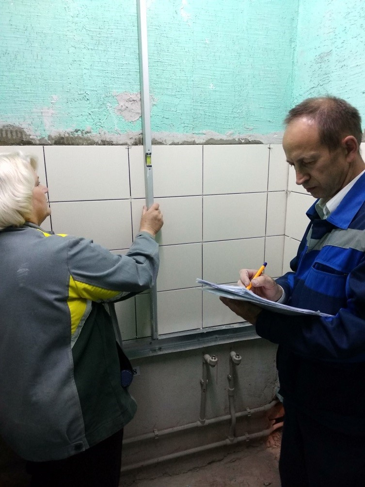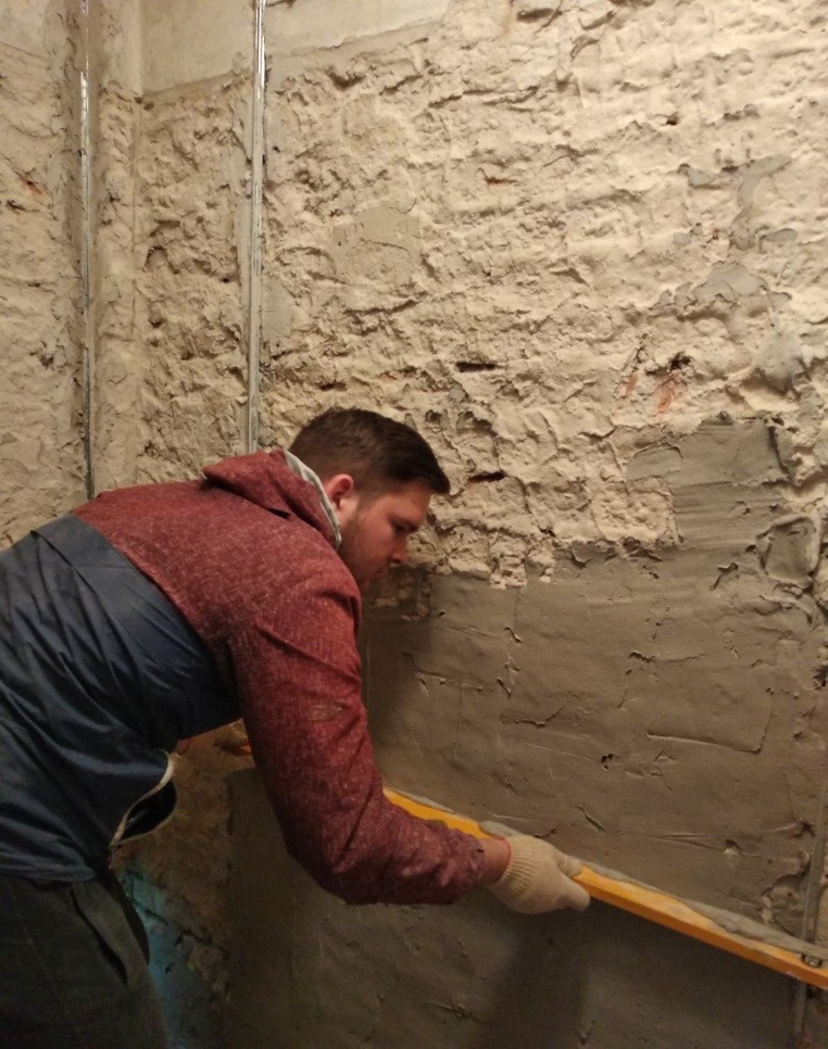 Практический этап квалификационного экзамена на получение квалификации рабочего «Штукатур 4-го разряда» и «Облицовщик-плиточник 3-го разряда» проводился в учебной группе 113-18 на участке производства ремонтных работ в общежитии колледжа в отдельных жилых блоках.