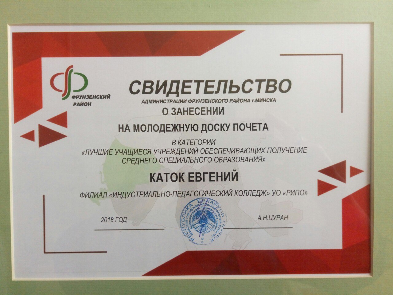 — Такую идею предложил БРСМ, чтобы мы могли поощрить нашу молодежь. Хочется, чтобы об этих талантливых ребятах узнал весь район, а жители могли увидеть, какие активные молодые люди у нас живут, учатся и работают. Я надеюсь, что открытие Доски почета даст толчок молодым фрунзенцам еще больше прославлять наш район, Минск и Беларусь в целом, — отметил во время торжественной церемонии глава администрации Фрунзенского района Артем Цуран.