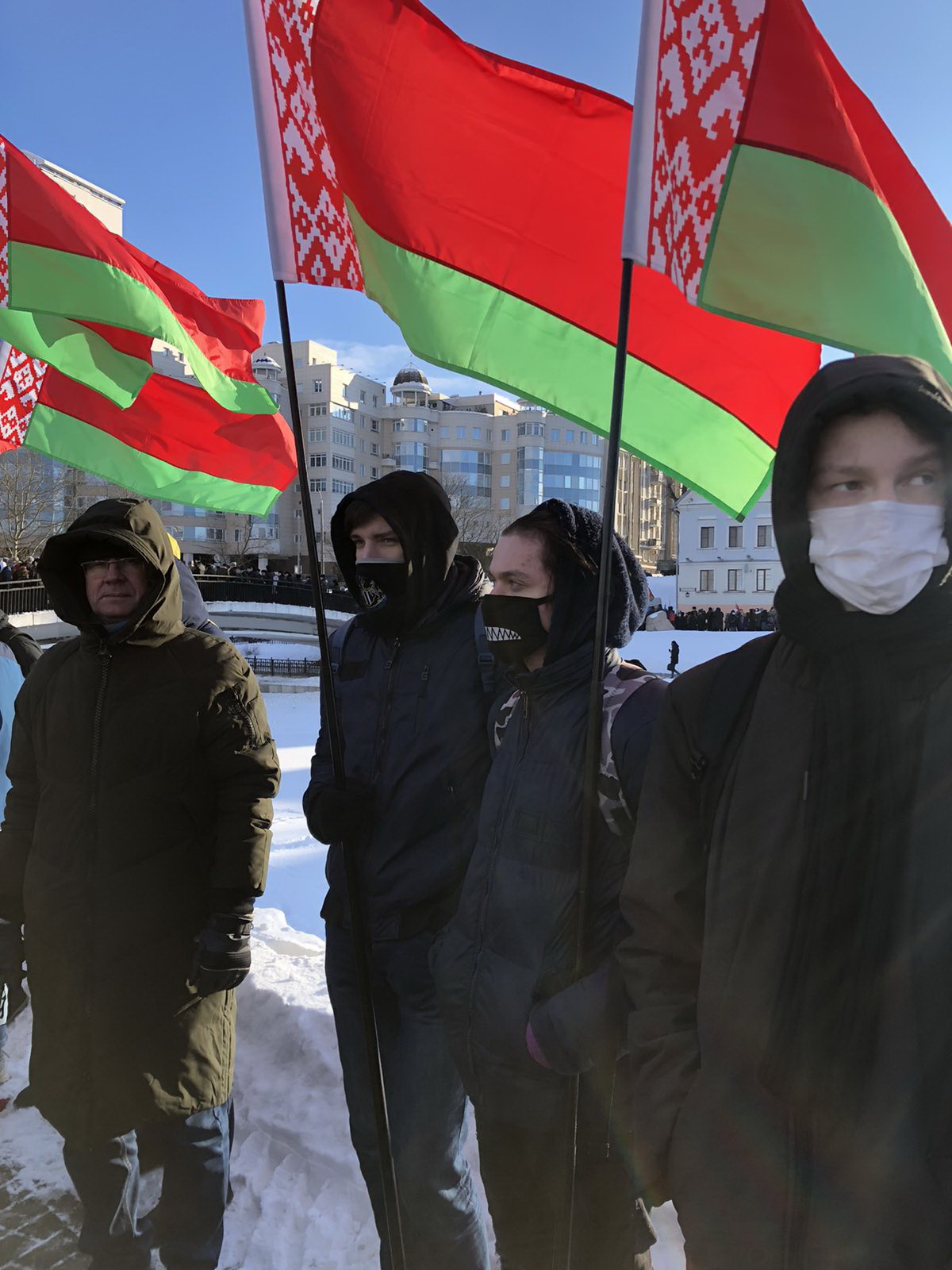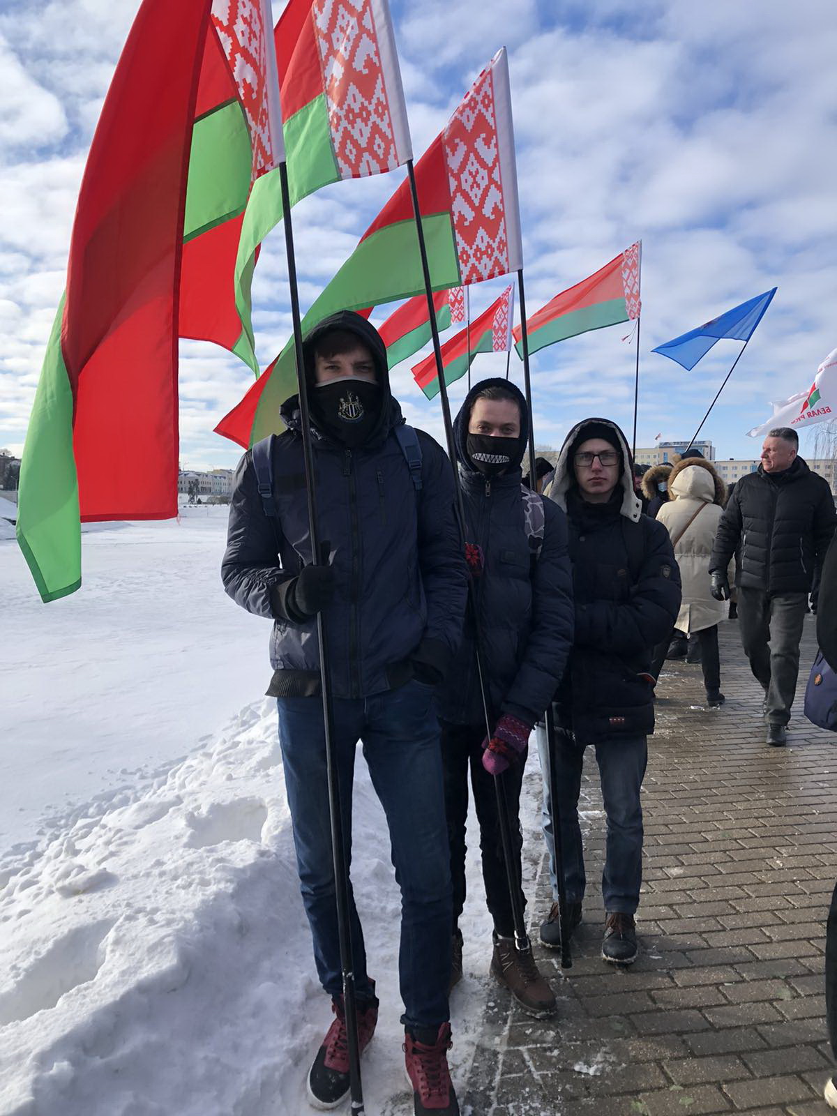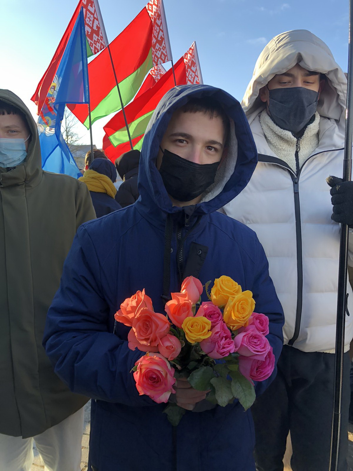Представители всех возрастов с цветами и флагами собрались вместе, чтобы почтить память своих соотечественников.