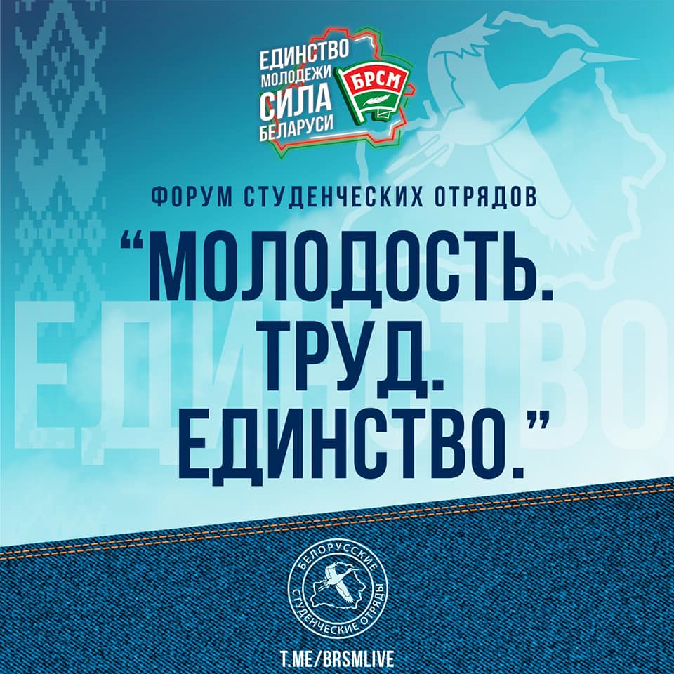 15-16 сентября 2021 года бойцы студенческих отрядов и активисты ПО ОО БРСМ филиала, в рамках реализации мероприятий, посвящённых Дню народного единства примут участие в Республиканском форуме студенческих отрядов "Молодость. Труд. Единство"!